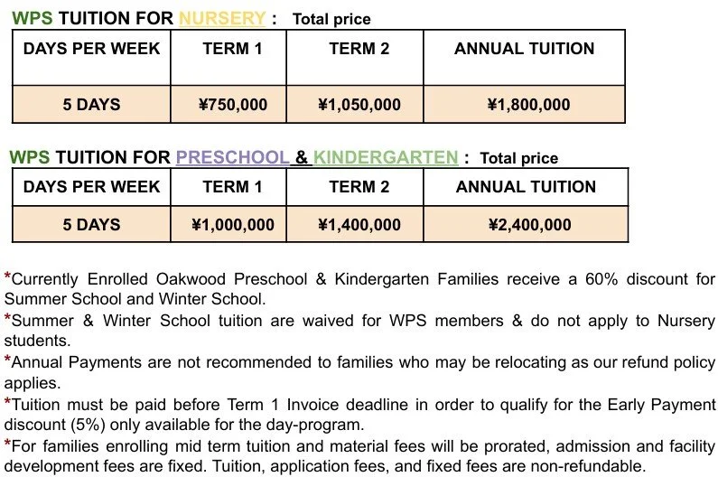 *Oakwood families are eligible to apply for tuition assistance from the government. 指導監督基準適合証明がある認可外保育施設利用者に対する保育料補助